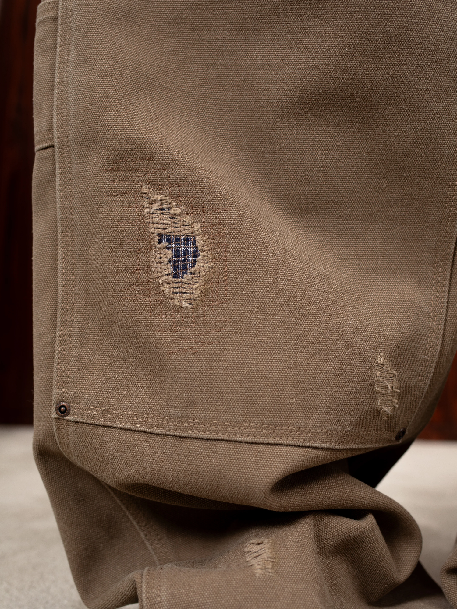 - 16 oz heavyweight cotton canvas with hand-abraded detailing