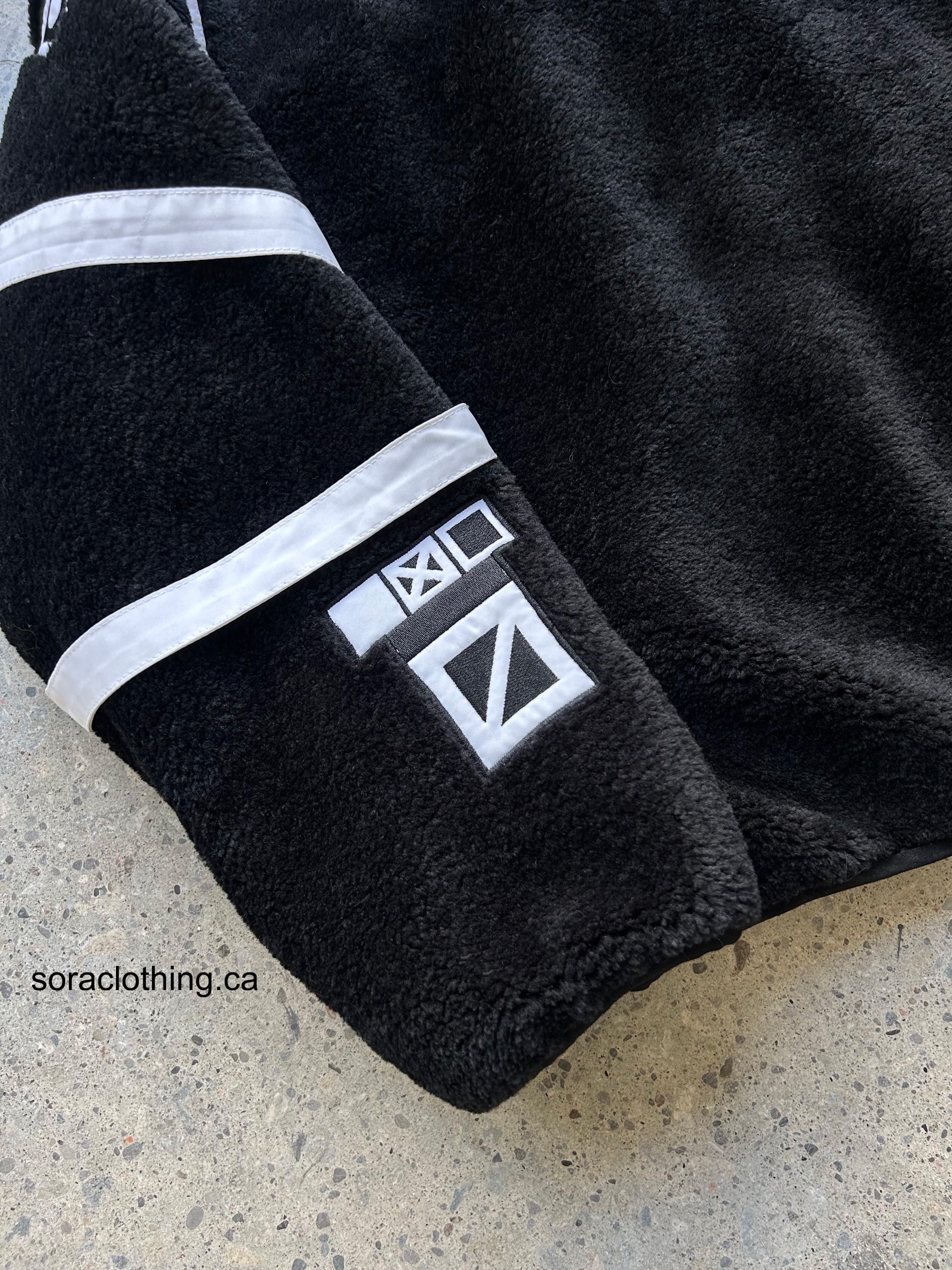 Heavyweight winter insulated sherpa jacket made of Teddy Fleece with embroideries on the front, sleeves, and straps on the left sleeve. Soft and comfortable, warm and breathable.  Super Soft!