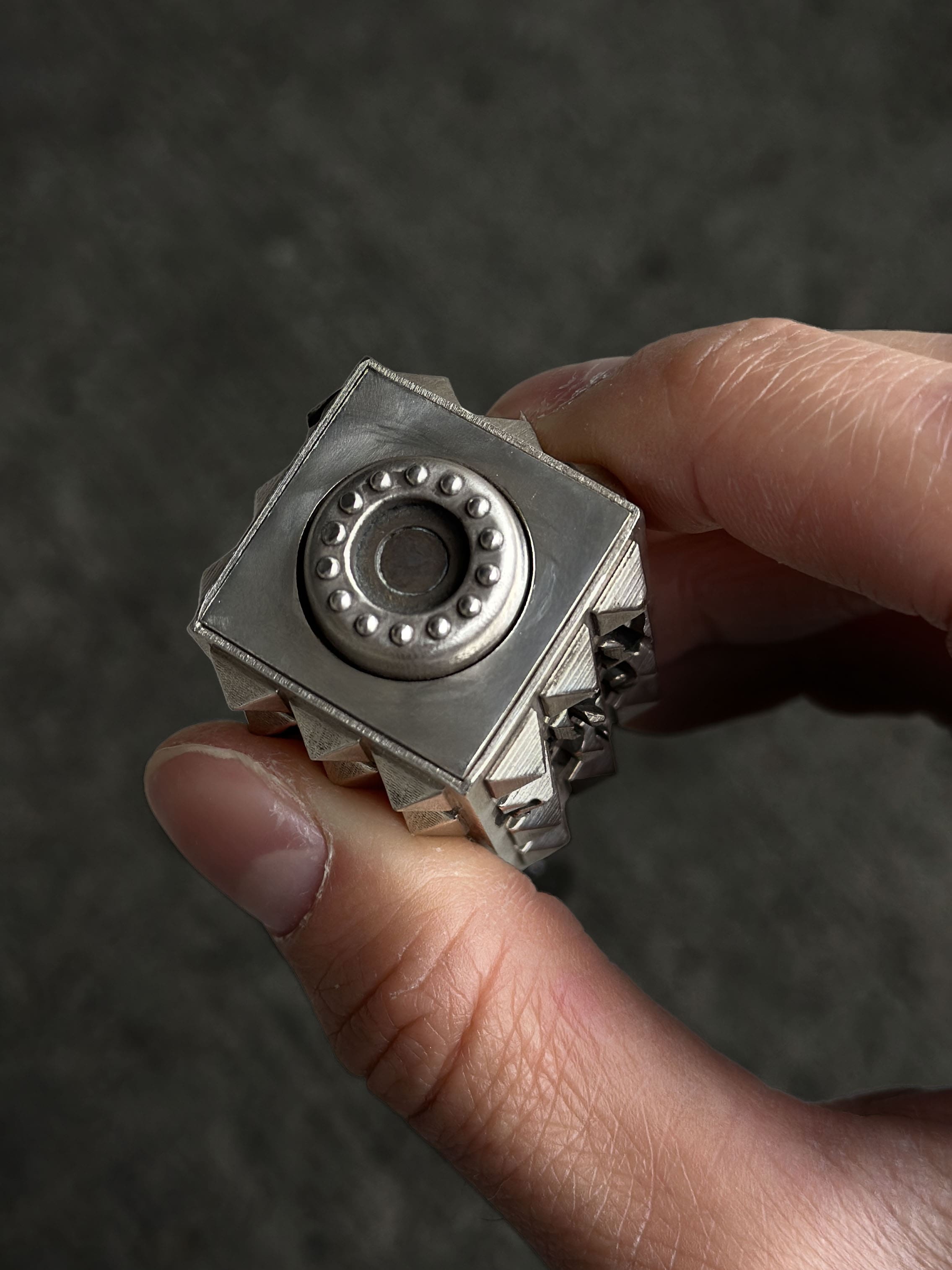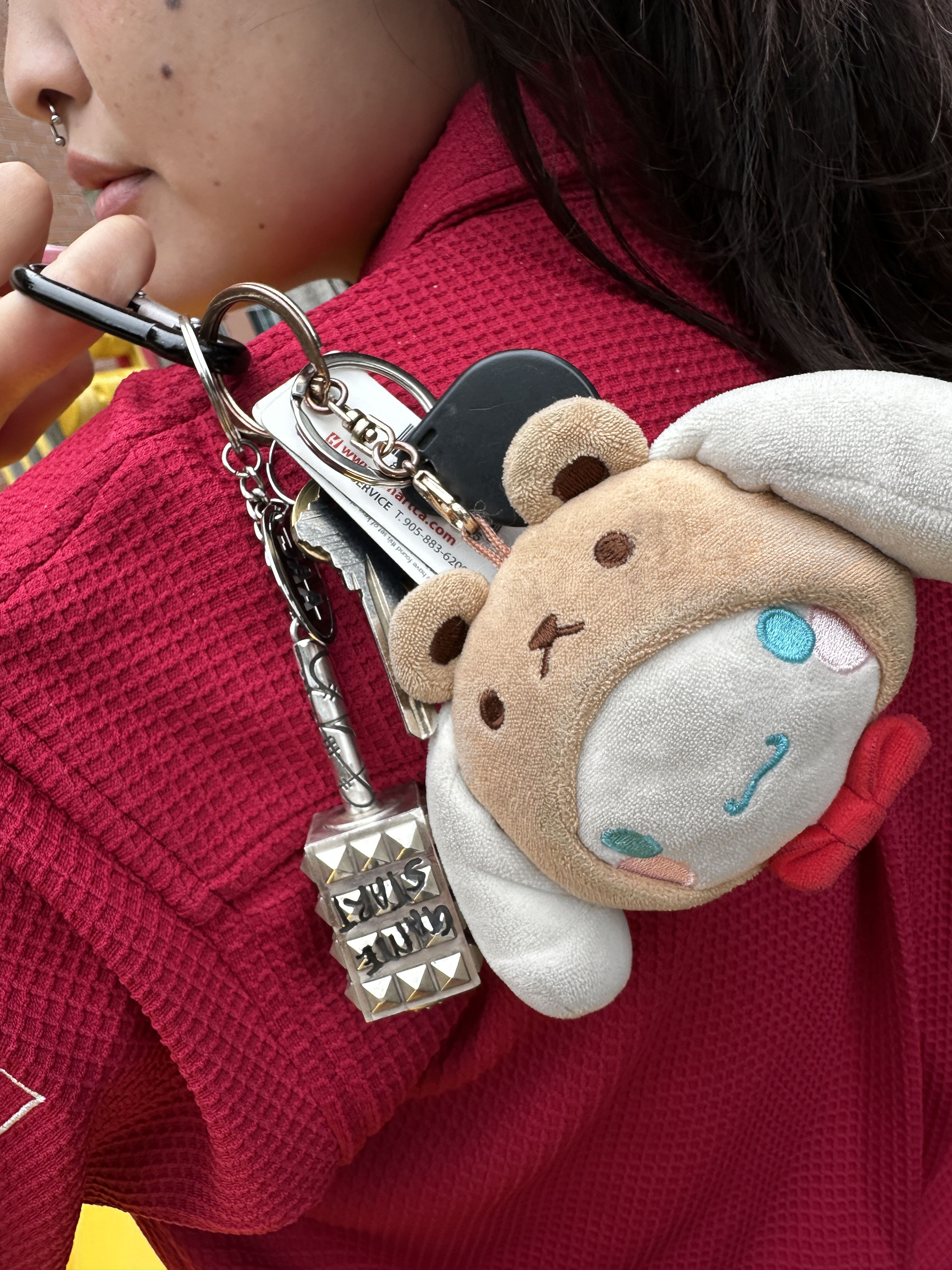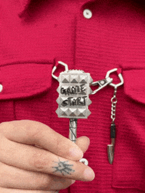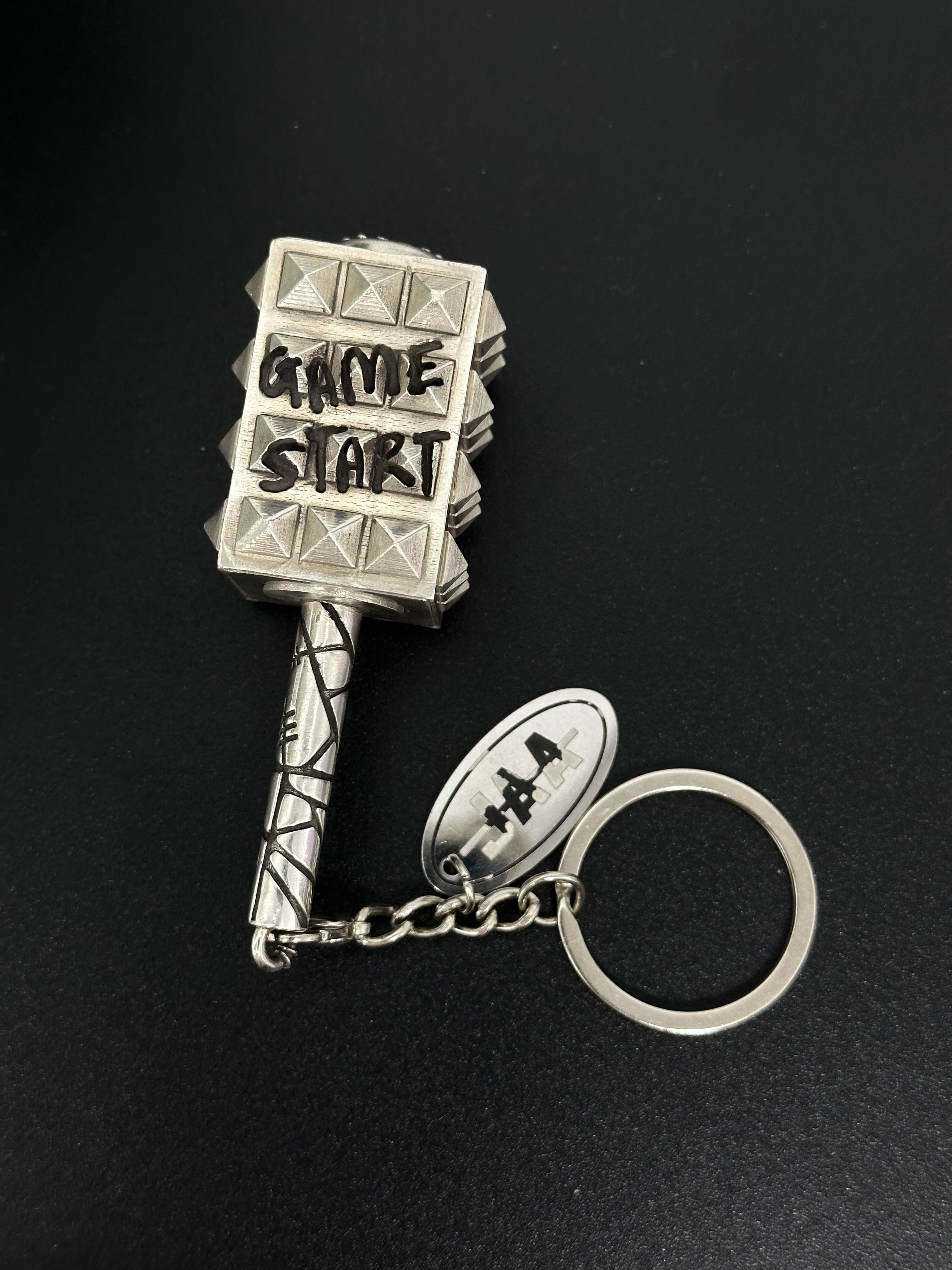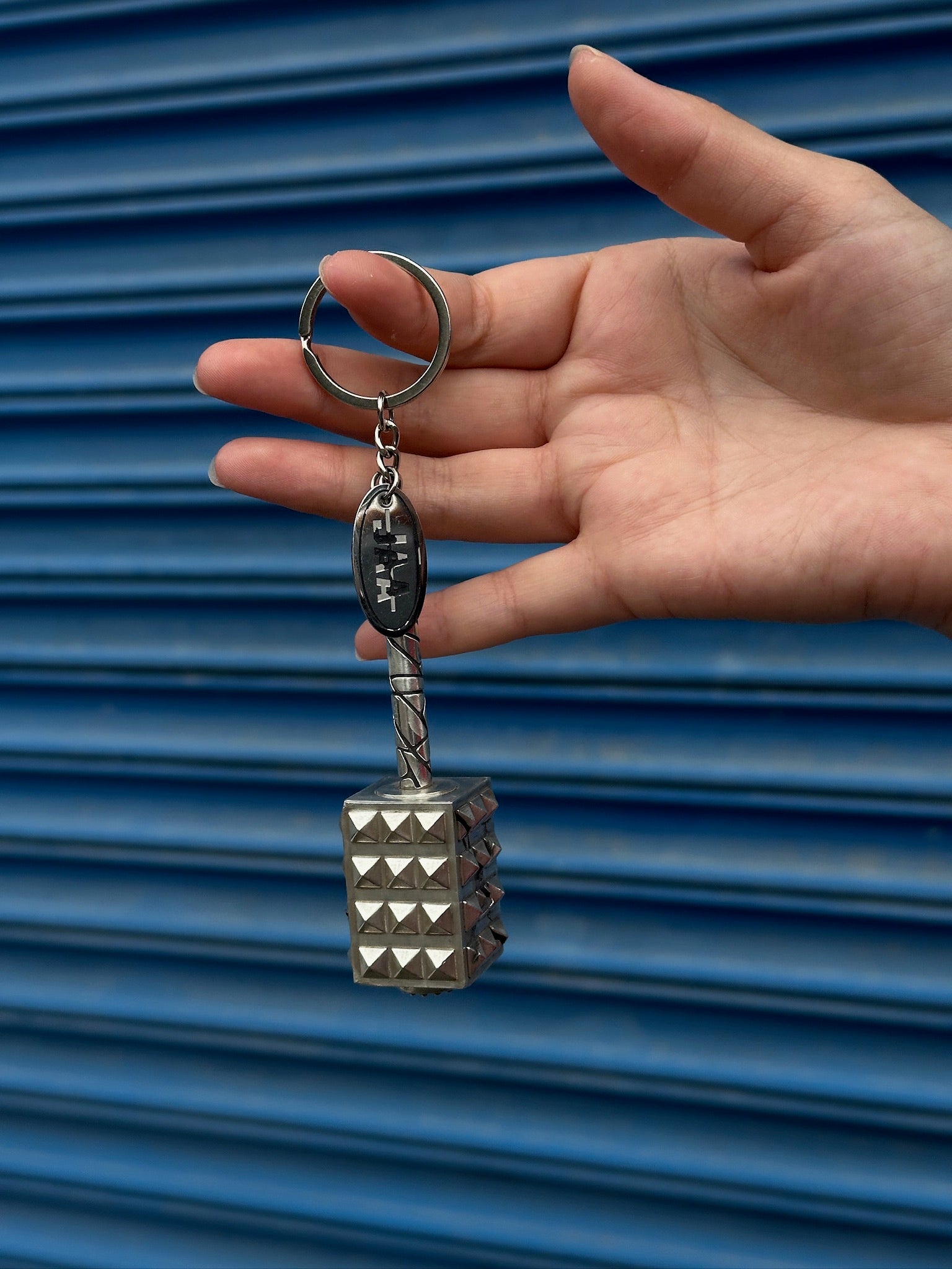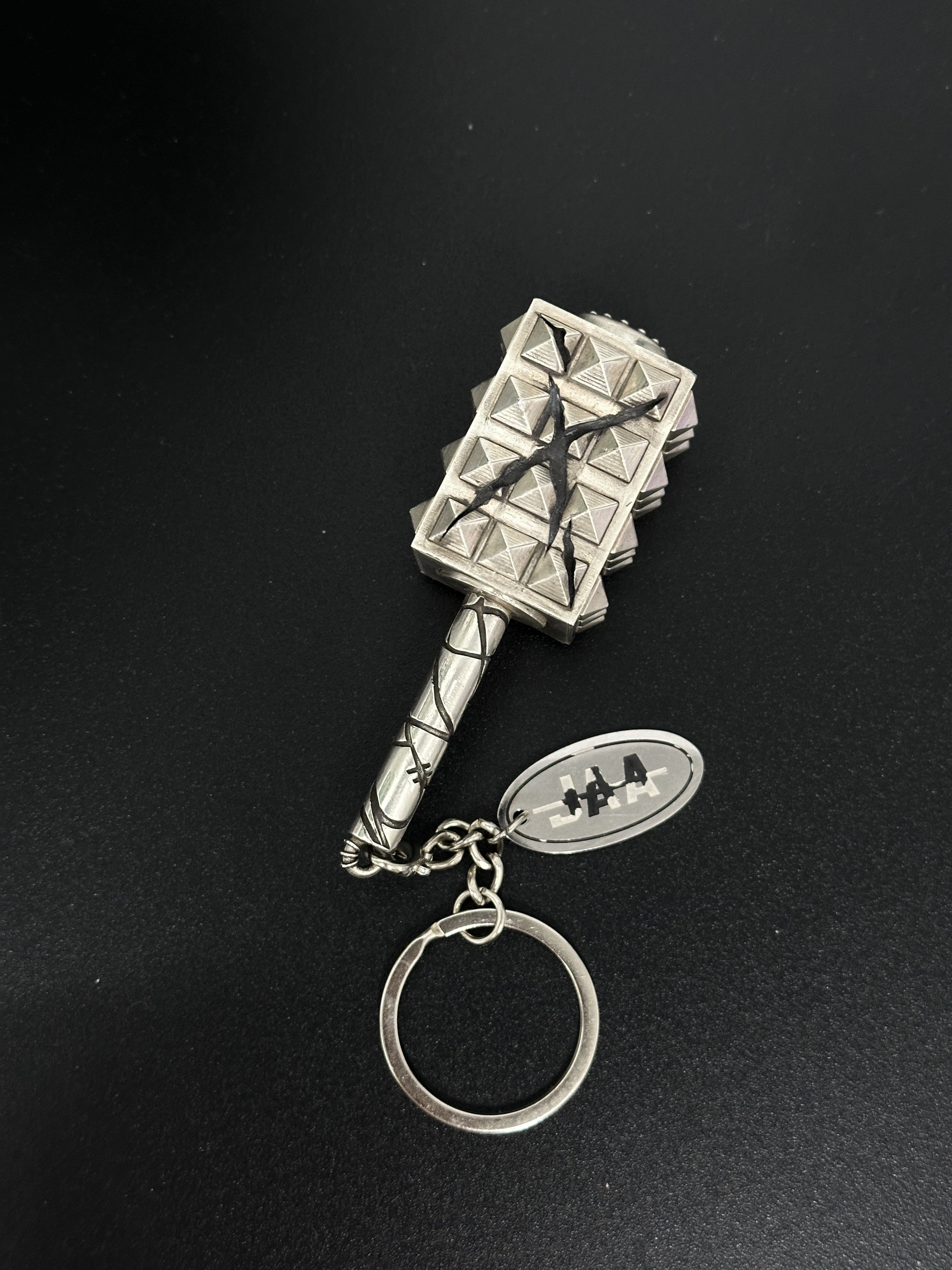 This keychain is cast in stainless steel with a movable top part of the mace. It makes a perfect fidget toy for anime fans. Made with a smooth, dark brushed metal finish, the keychain is durable and functional.