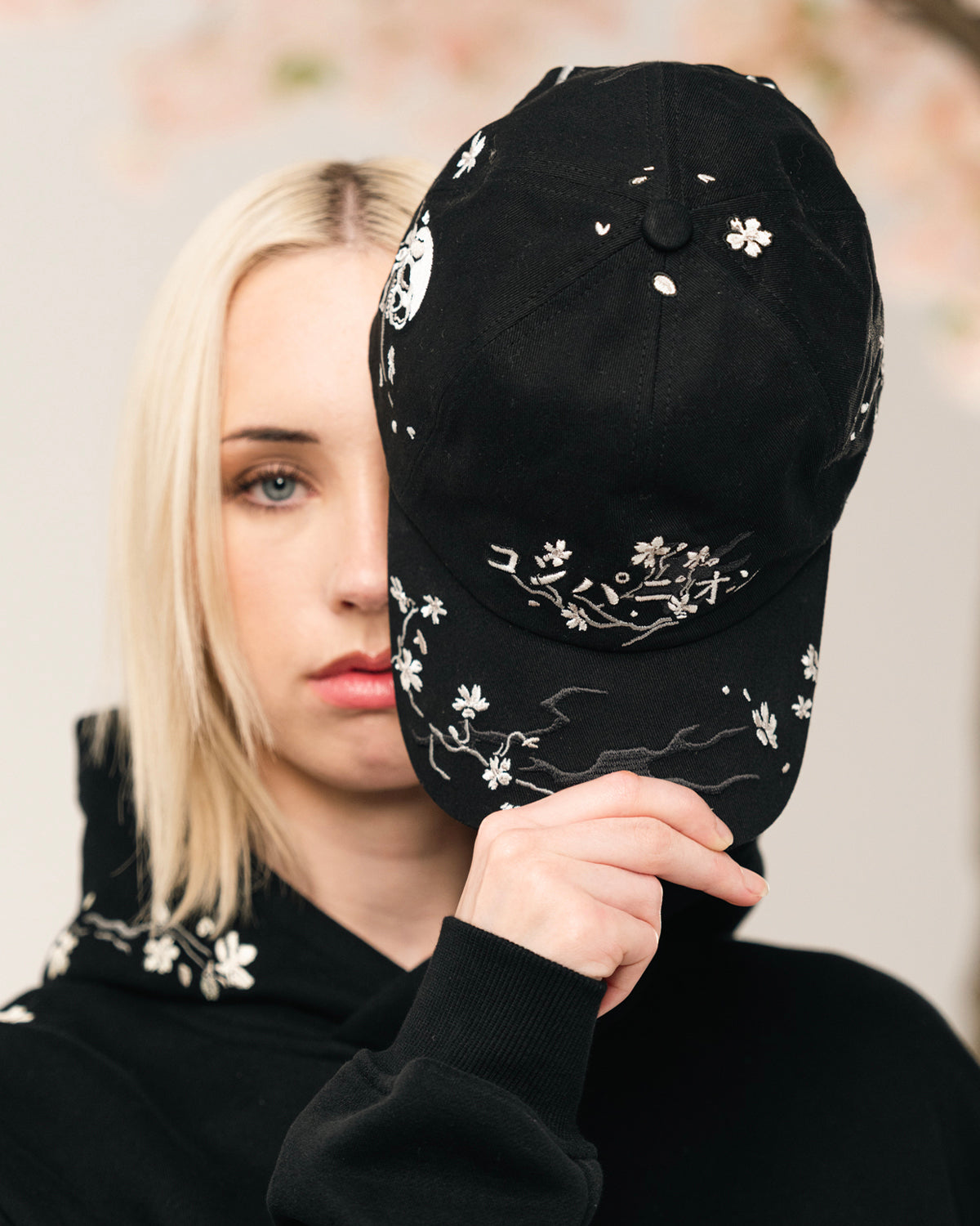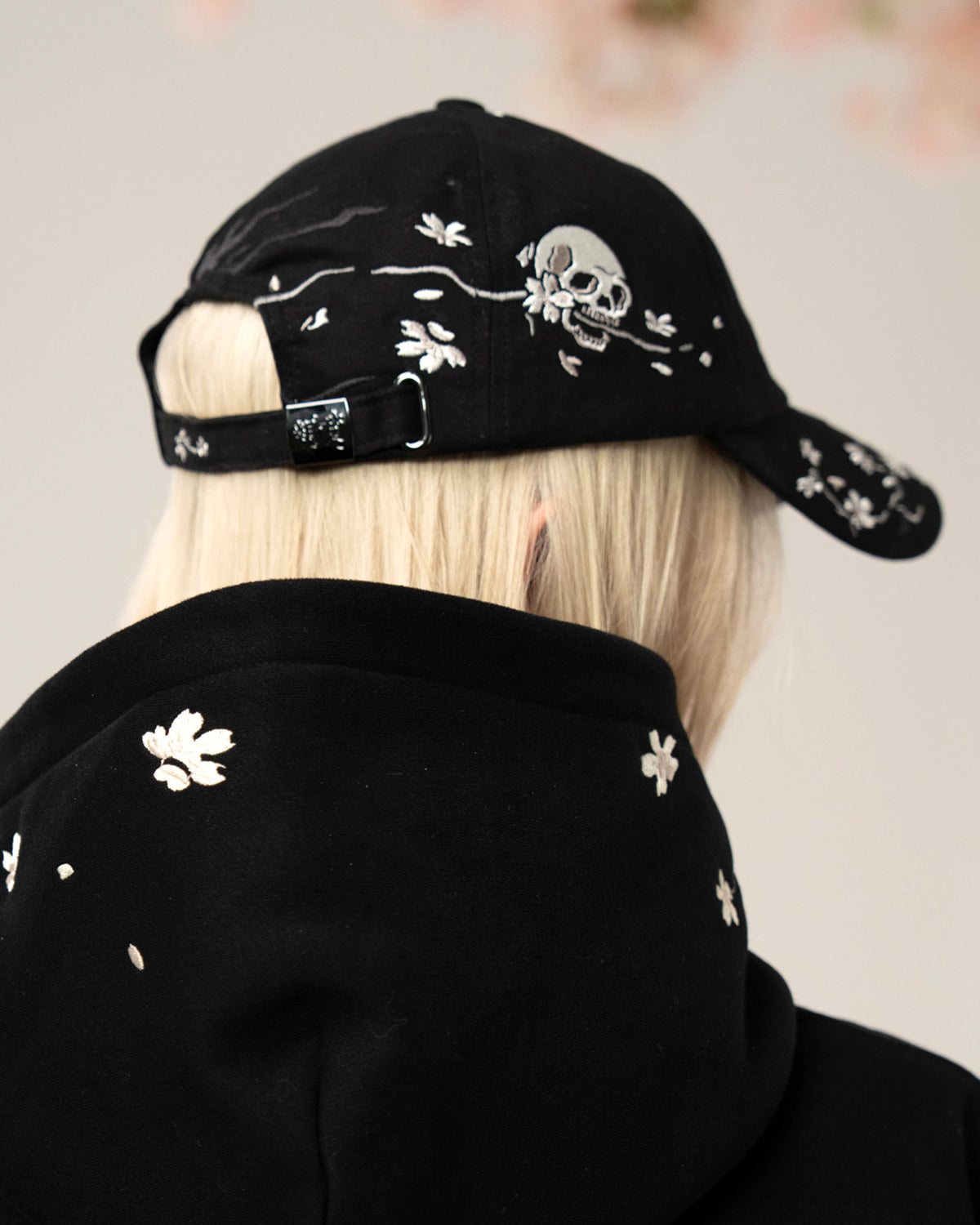 Custom 6 Panel Cap with All Over Skull Blossom Embroidery